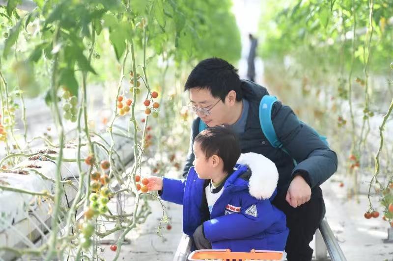 在朝来农艺园,市民不仅可以陪伴孩子享受亲子采摘的乐趣,还可以学习农业知识:在科普展示区,可以观赏羽衣甘蓝、智能立体水培生菜等更多特色农作物及数智化生产方式,浏览朝阳农业数智化发展史,了解朝阳农业故事,让人耳目一新。